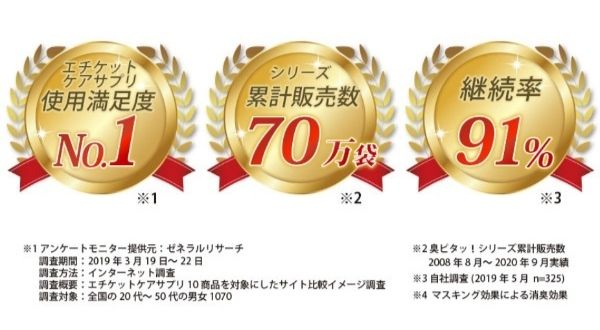エチケットケアサプリ使用満足度でもNo.1を獲得しています!